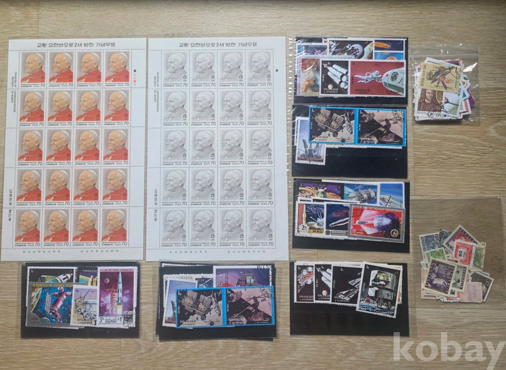 요한바오로2세 전지우표 2점 에어로스페이스 우표 6점 일괄