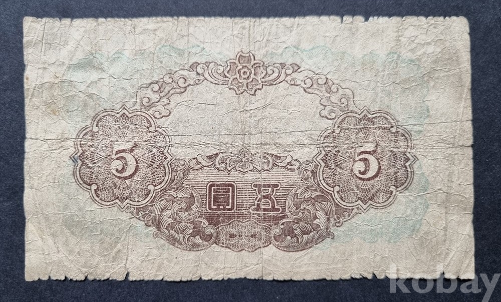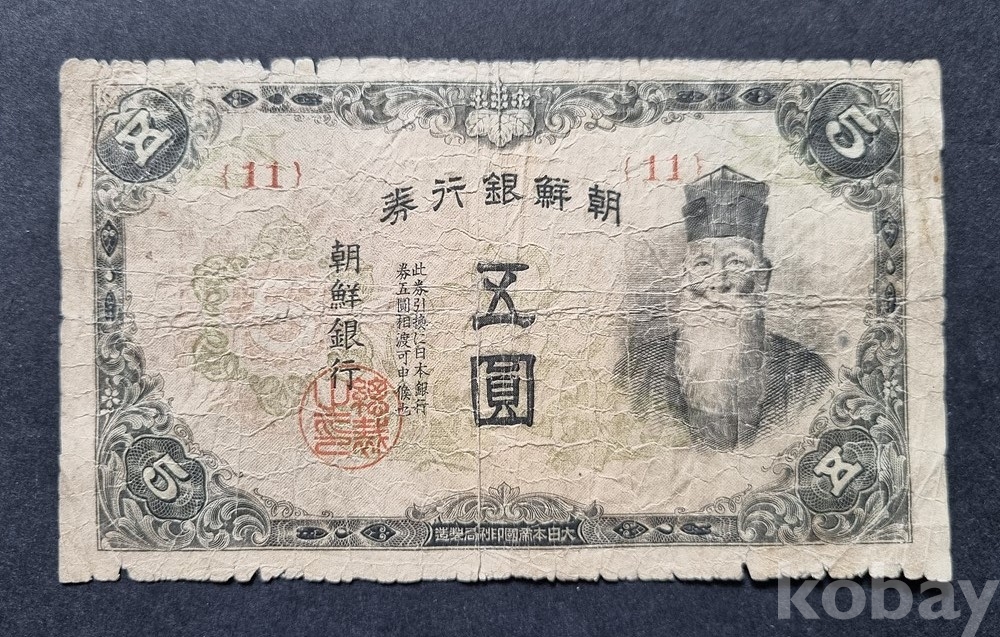 X-18 / 조선은행권 옛날 지폐 "오원" (수노인상. 일본내각인쇄국) 1935.6.1~