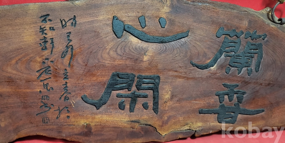 괴목나무에 서각된 명필 난향심한(蘭香心閑) 서각품입니다,