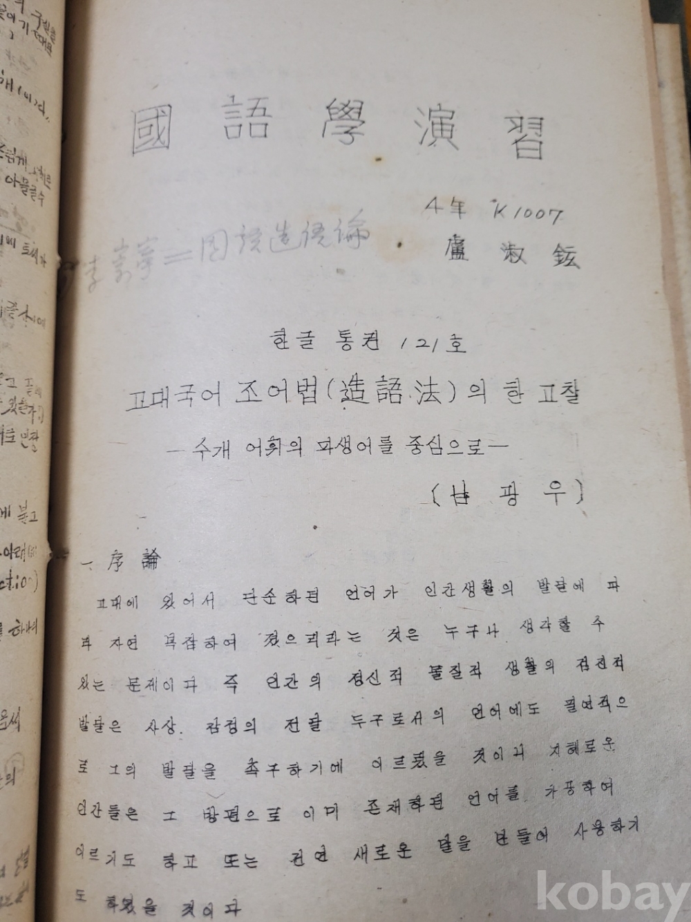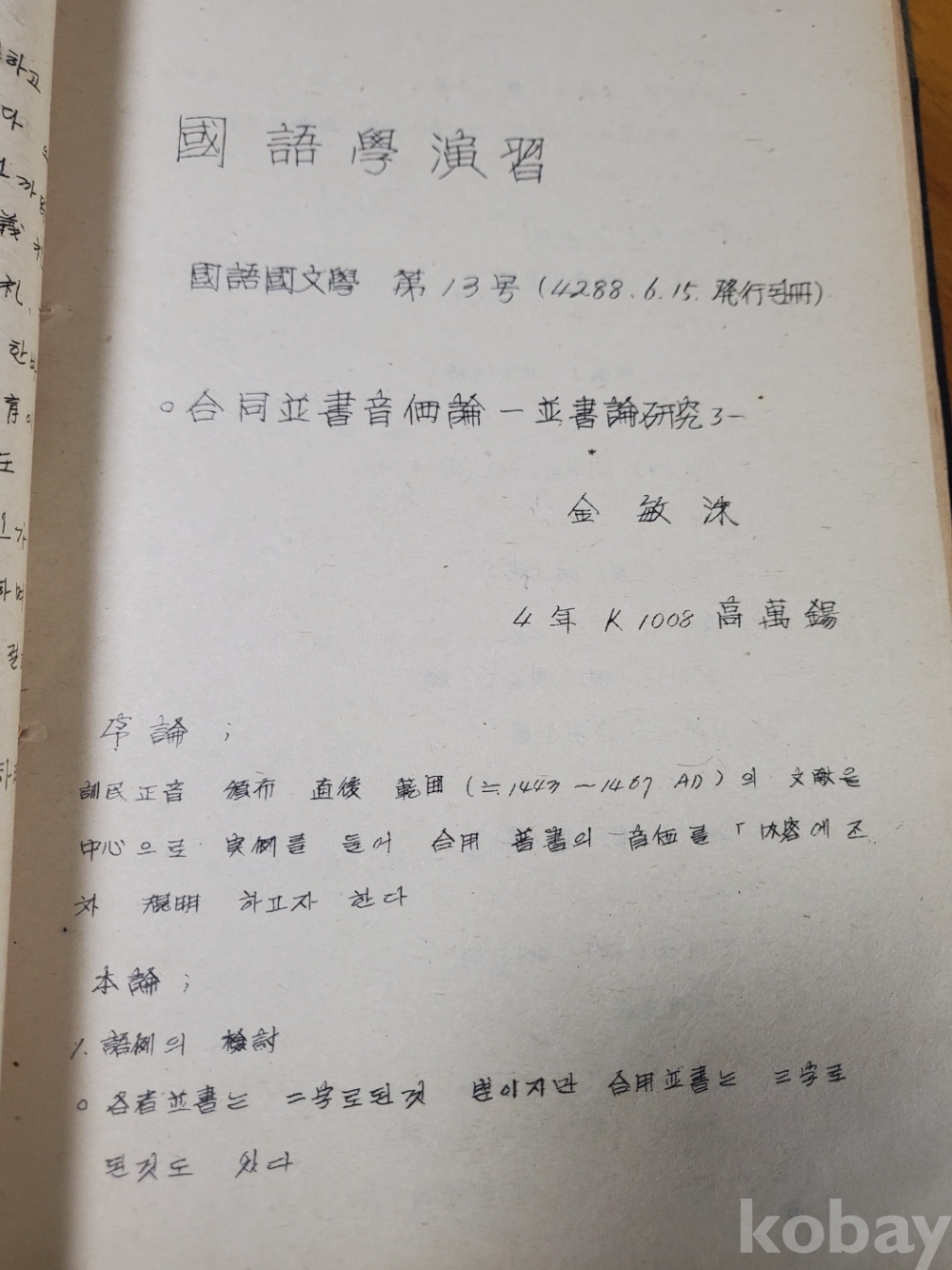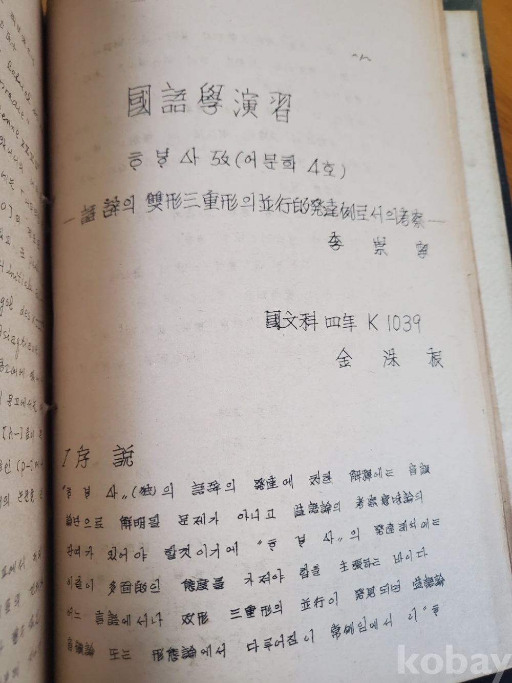 1. 국어학논문(청구대학 국문과 4학년생들의 논문 묶음), 1960년대 초, 철필본상태 상, 사진 참조