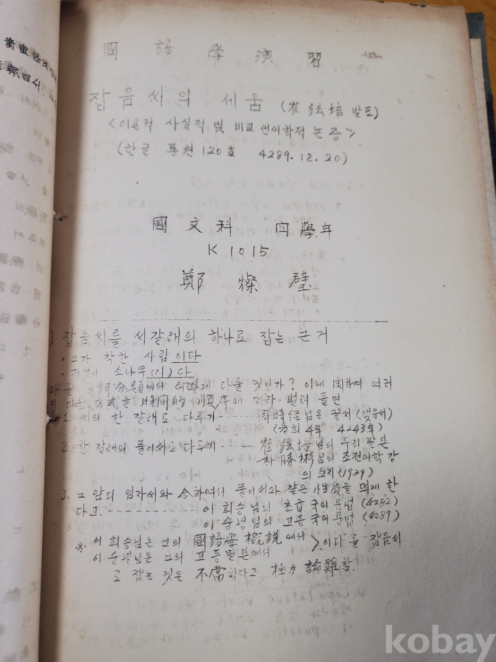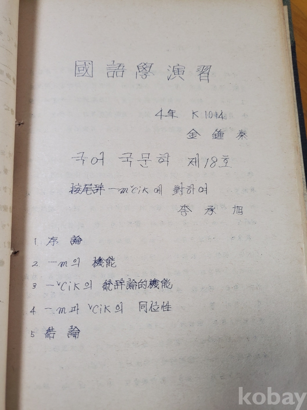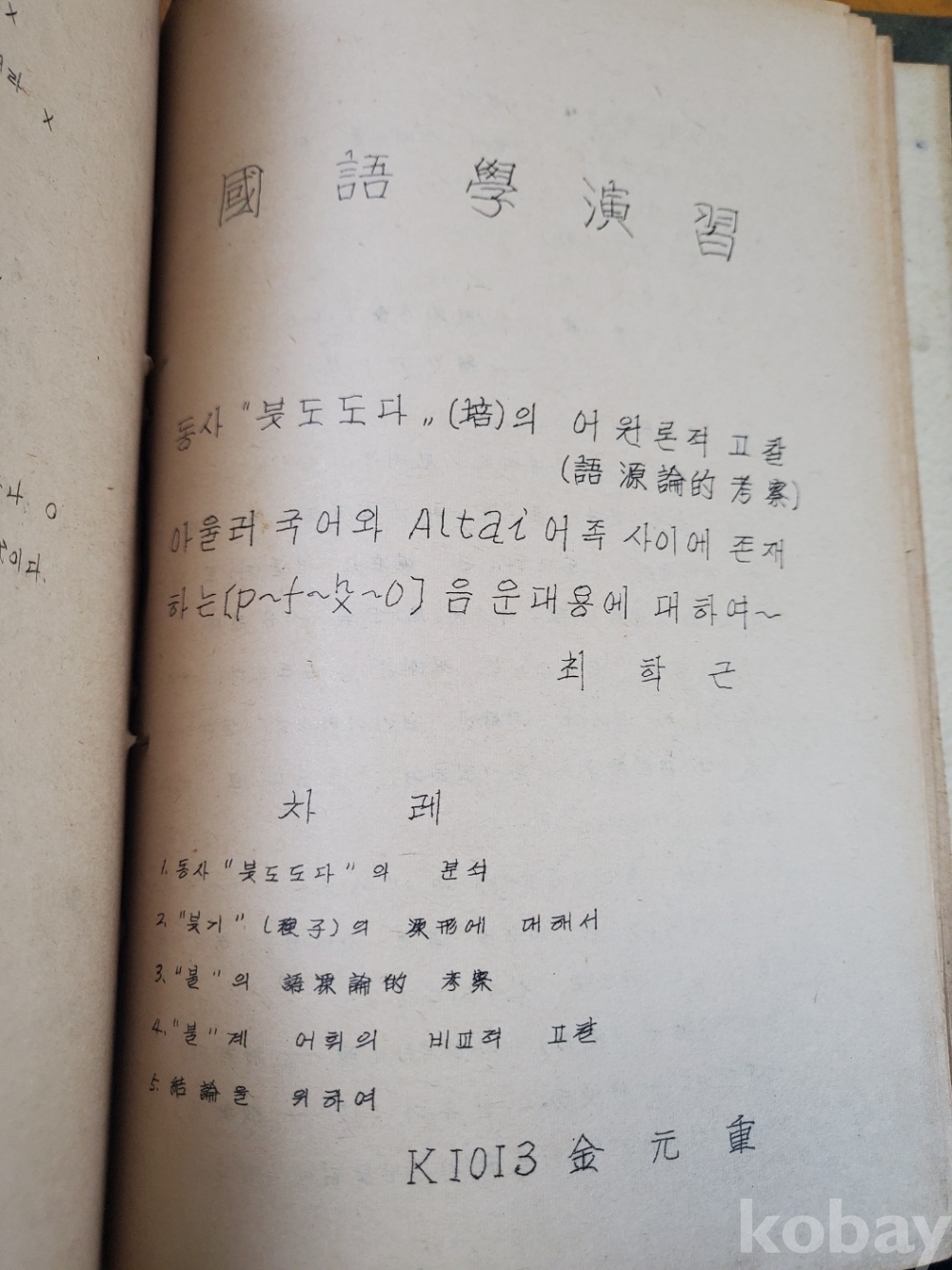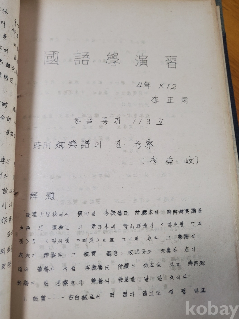 1. 국어학논문(청구대학 국문과 4학년생들의 논문 묶음), 1960년대 초, 철필본상태 상, 사진 참조