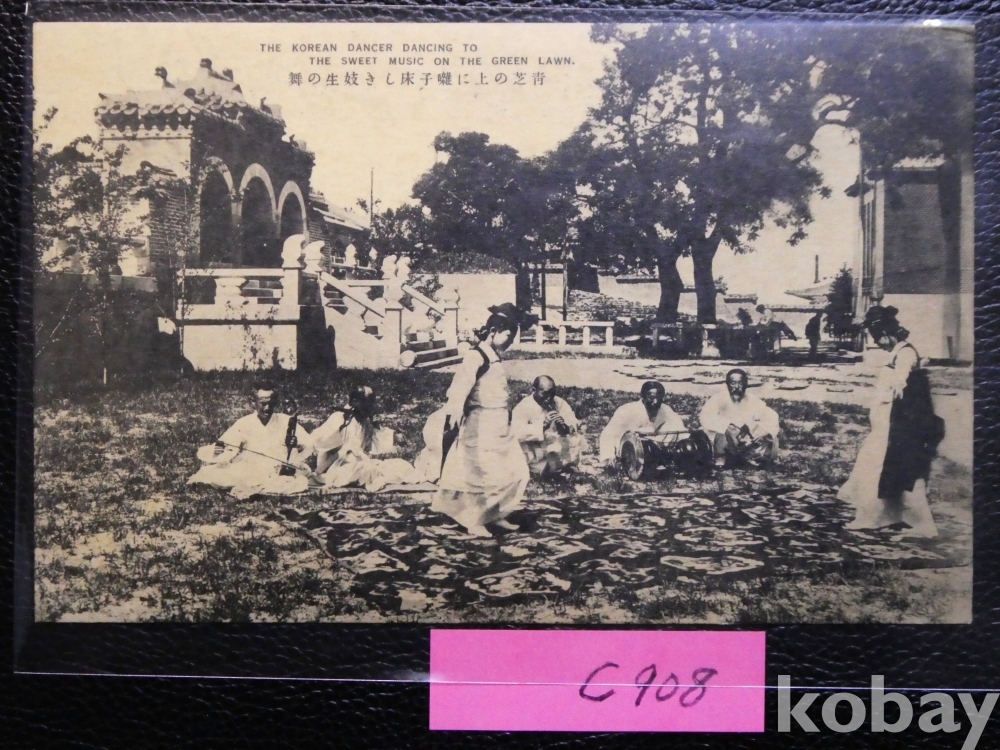 ▣한국근대엽서(진본): 황궁우 앞 정원에서 기생들이 조선 음악에 맞추어 춤추는 모습, 대정사진공예소 발행.