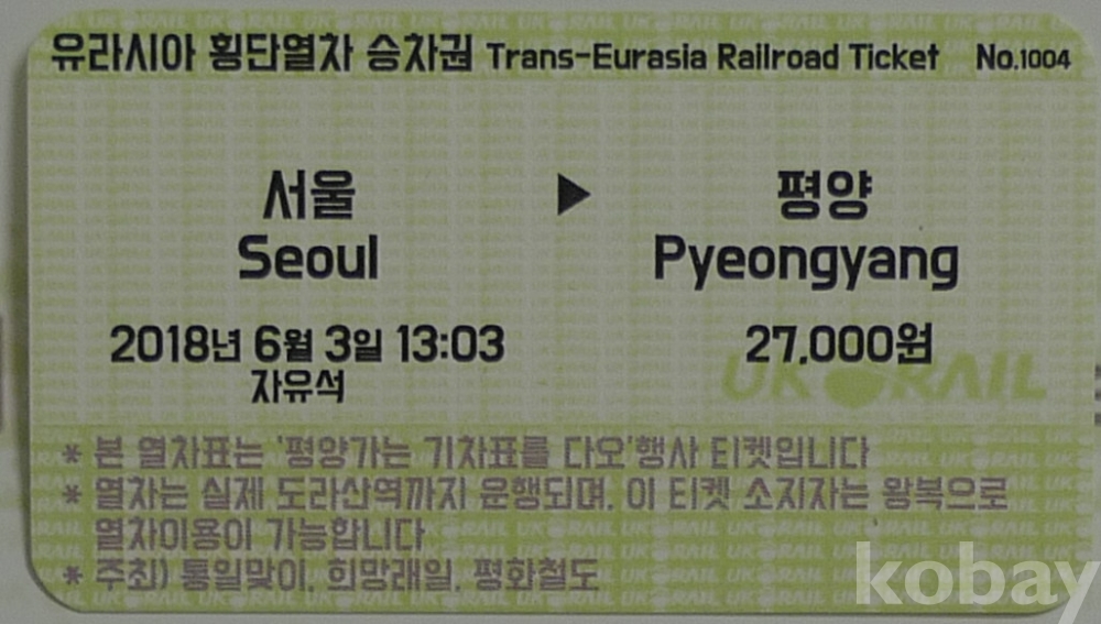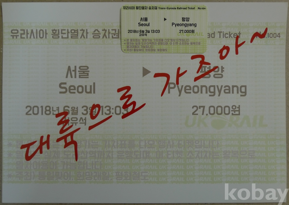 2018년 유라시아 횡단열차 서울 - 평양 기념 승차권 2장
