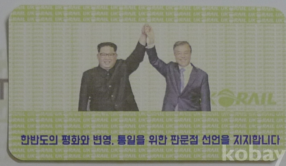 승차권 앞면 평양 방문 당시 문재인 대통령과 김정은 모습