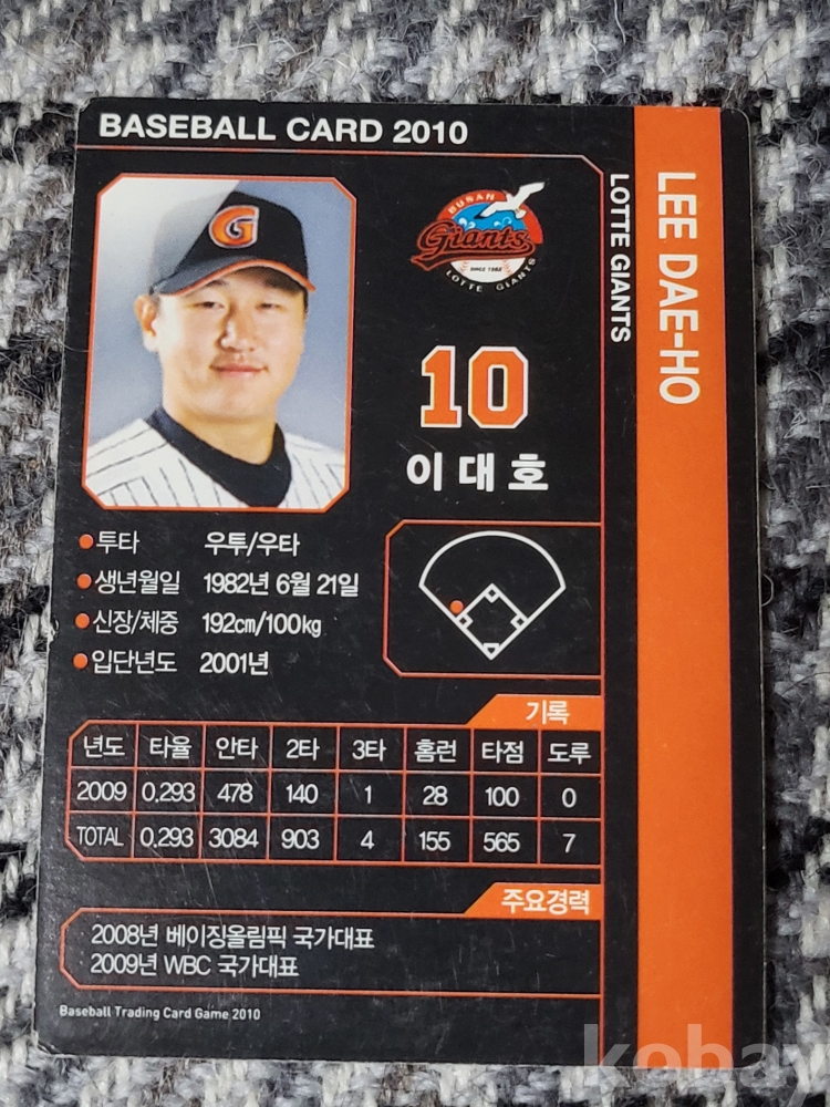 KBO가 공식카드를 발매하지 않던 2010년 해적판으로 발행되었던 희귀 프로야구 트레이딩카드 입니다.