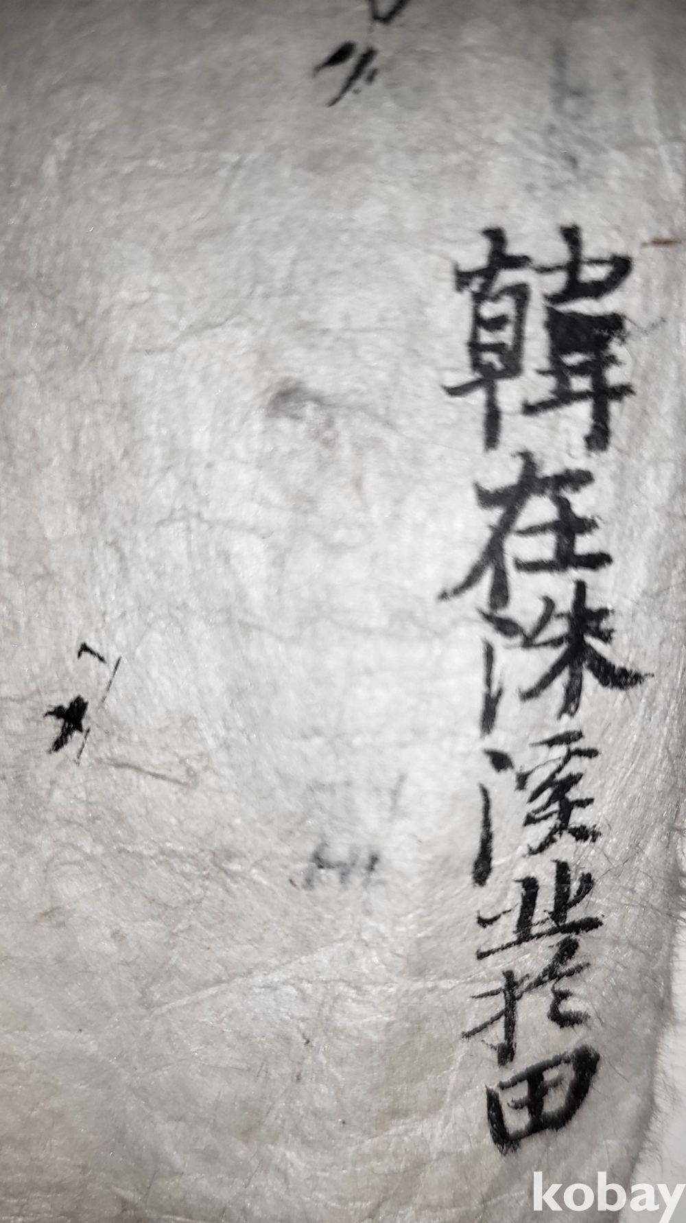 한말 "한재수" 수결이 보이는 장지바닥에 시문(詩問)이 가득찬 서예품입니다,