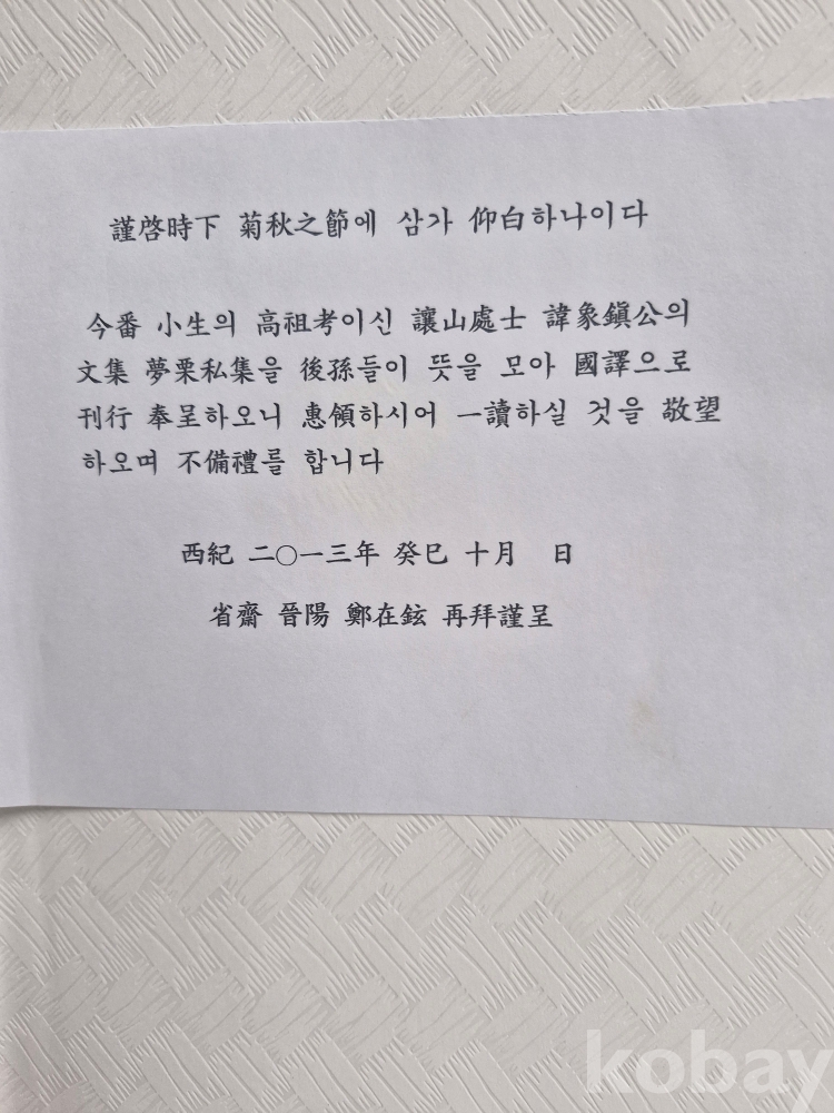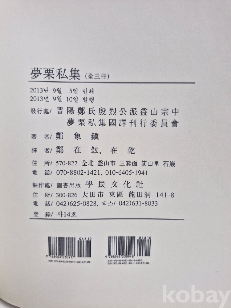 발행처 진양정씨은열공파익산종중 몽율사집국역발간위원회,