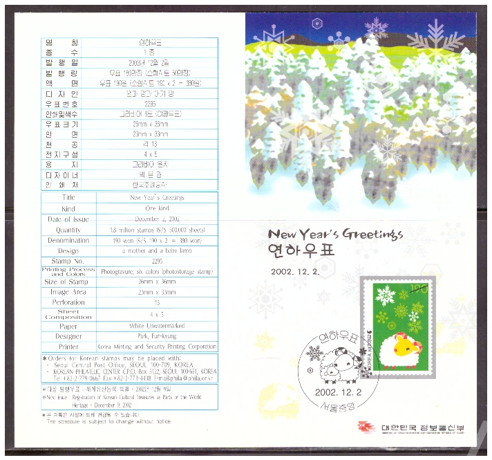 (안내카드) 2002.12.2 연하우표 (접지않음)