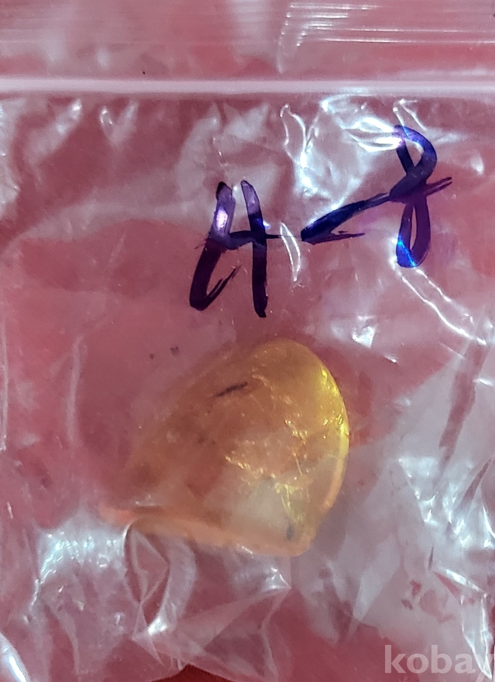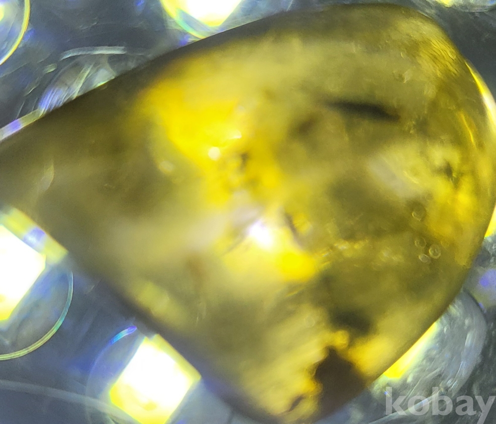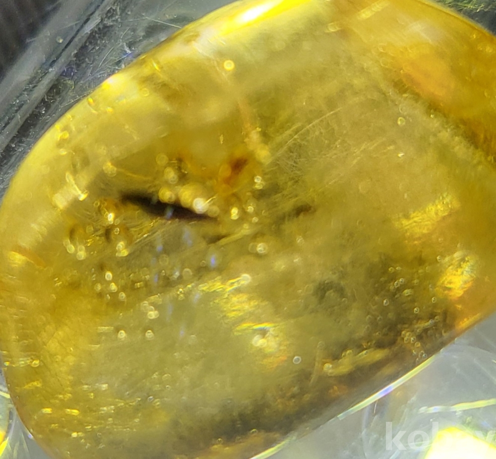 불빛이 투과되며 내부에 이물질이 들어있는 호박입니다,