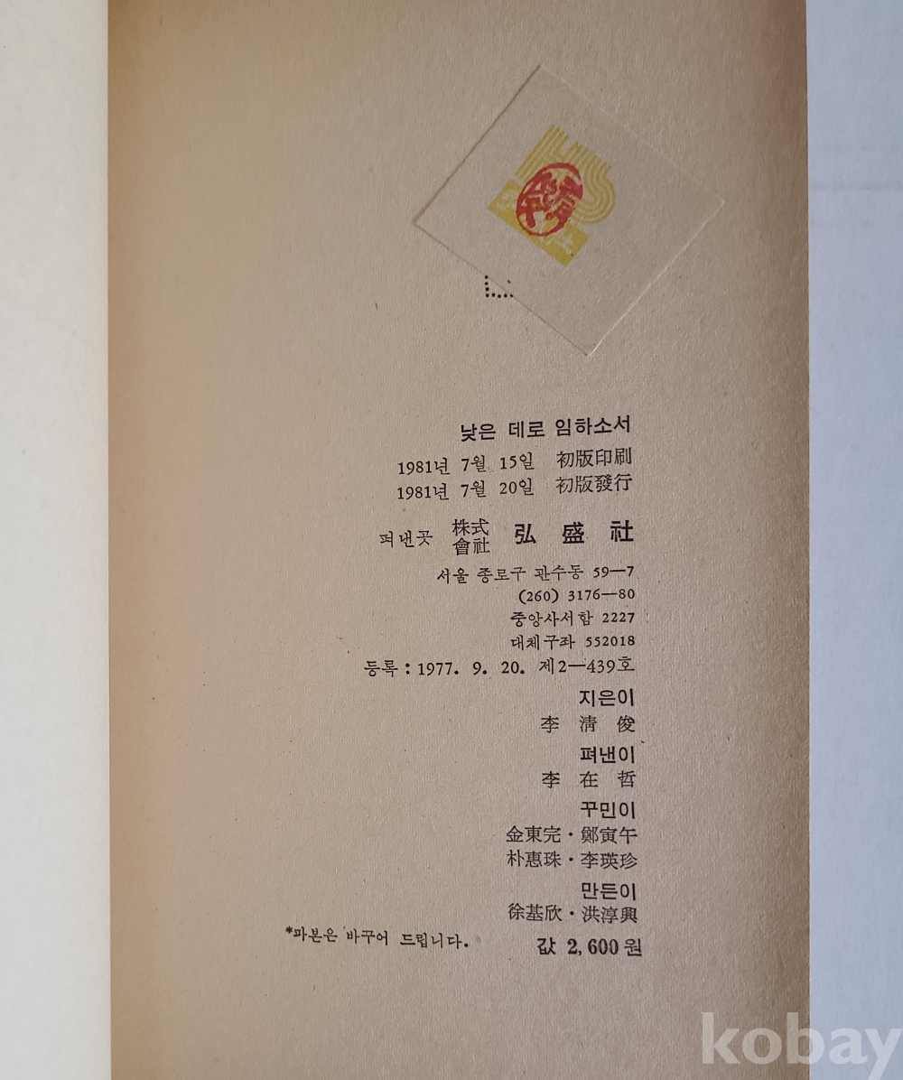 이청준 장편소설 <낮은 데로 임하소서> 희귀 초판본