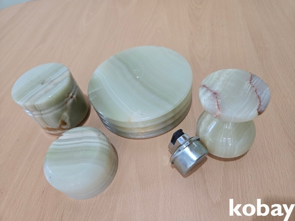 옥돌 재털이, 라이타, 담배 합 입니다.