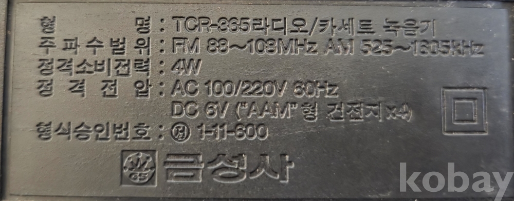 품 명 | AM 과 FM 동작하며 작고 아담한 흰색 과 검정색 금성 카세트 라디오 ***TCR-365*** |