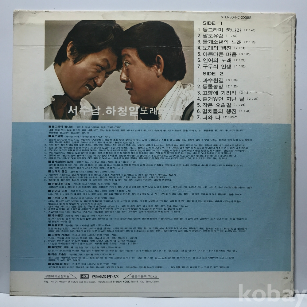 LP 35,350-79 서수남 하청일- 동그라미 꿈나라/ 과수원길 . ` 79 한국 자켓 EX+ 알판 EX