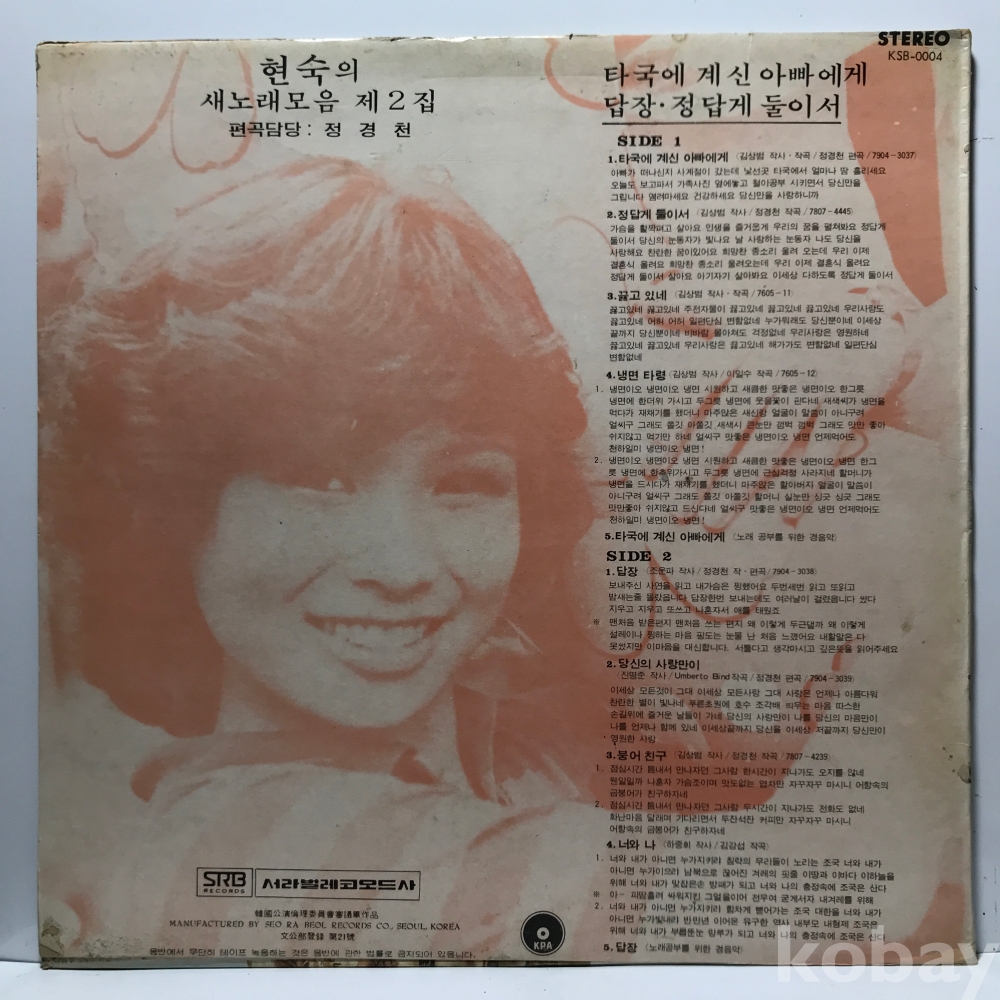 LP 35,650-86 현숙- 타국에 계신 아빠에게 . 79 서라벌 자켓 EX+ 알판 EX