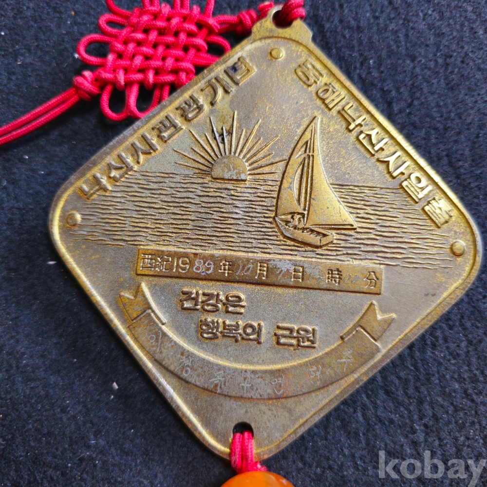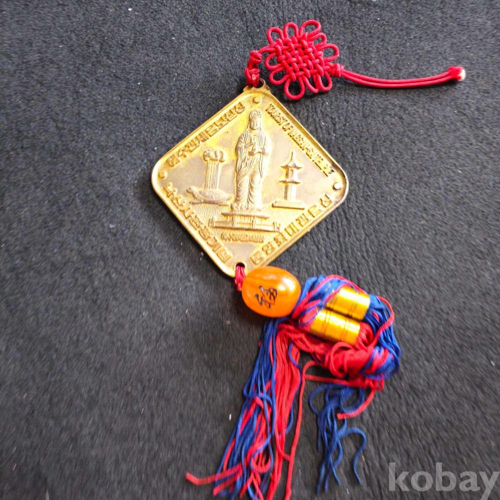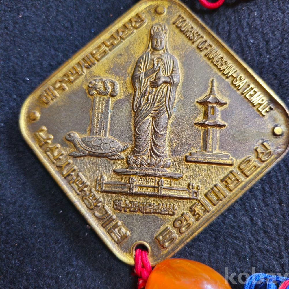 (((근현대사자료))) 1980년대 해수관세음보살상 양각 낙산사관광기념 매듭달린 금속 메달