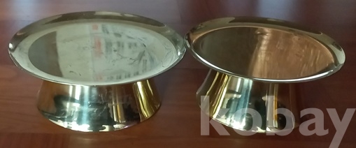 싸이즈, 큰것이 상단부직경20.3* 굽경15*높이7.5Cm, 중량563g정도. 작은건 비교바랍니다. 제기 나물/과일쟁반 혹은 접시라고 불리는것으로 형태는 특이하다 할것이 없는데 그 싸이즈가 재미있는것 같읍니다. 보통 제기보다는 확연히 크고 또 다과상이나 찻상보다는 작은.. 그러니까 그 중간크기입니다. 이런 사이즈는 극히 드문것 같읍니다. 싸이즈를 한번 눈여겨 봐 주시고. 상태는 사진에 보시듯 신작, 미사용품으로 보입니다. 광택도 그래로 살아 있고.. 실사용은 물론 수집 전시 등 인테리어용으로 활용해도 좋을것 같읍니다.