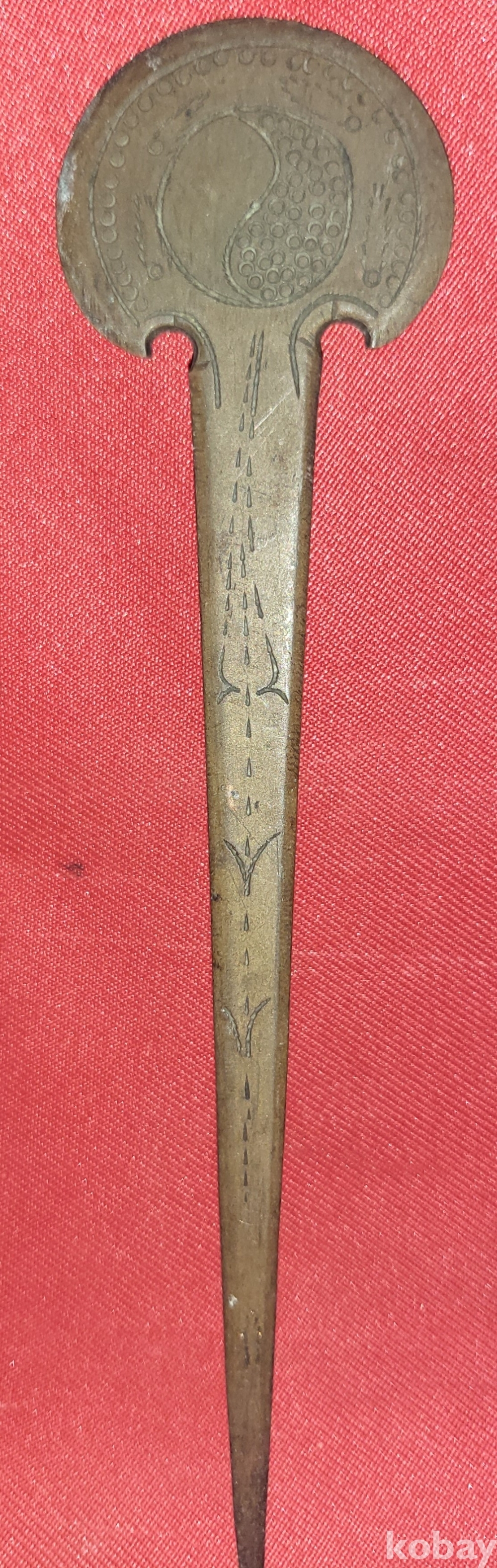 구한말 연대갖춘 적동으로 만든 꽃과 태극 문양 뒤곶이입니다,