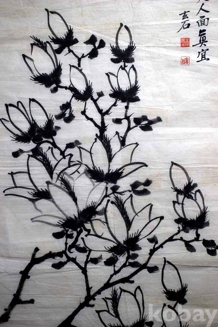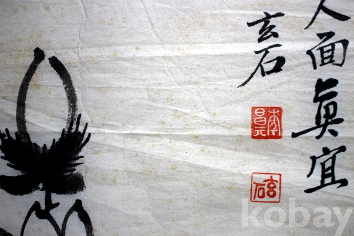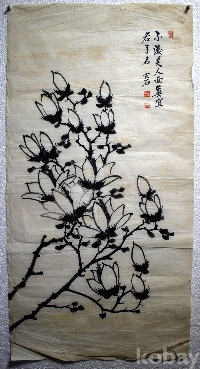 사진이 어둡게 나왔고 하단 가장자리가 약간 닳았을 뿐 배접이 안된 미사용으로