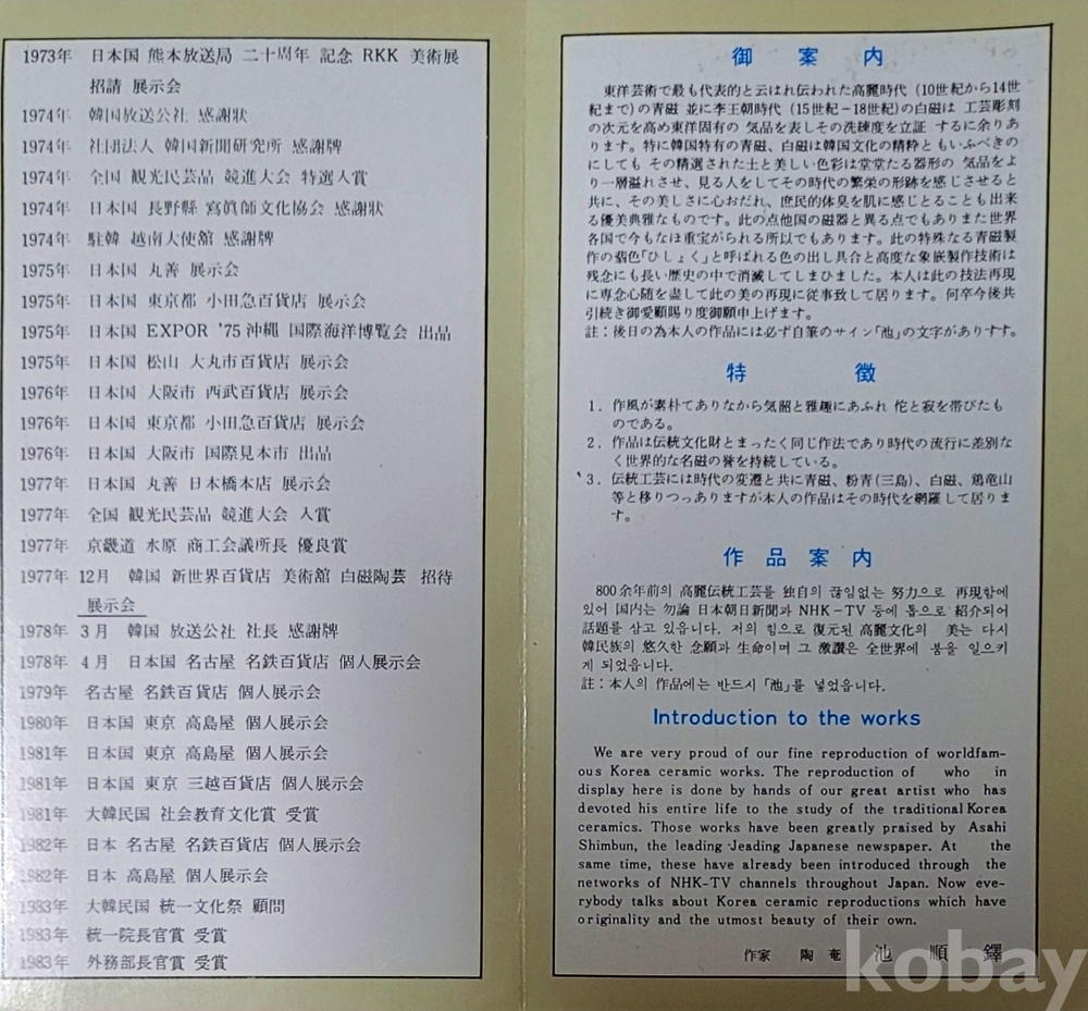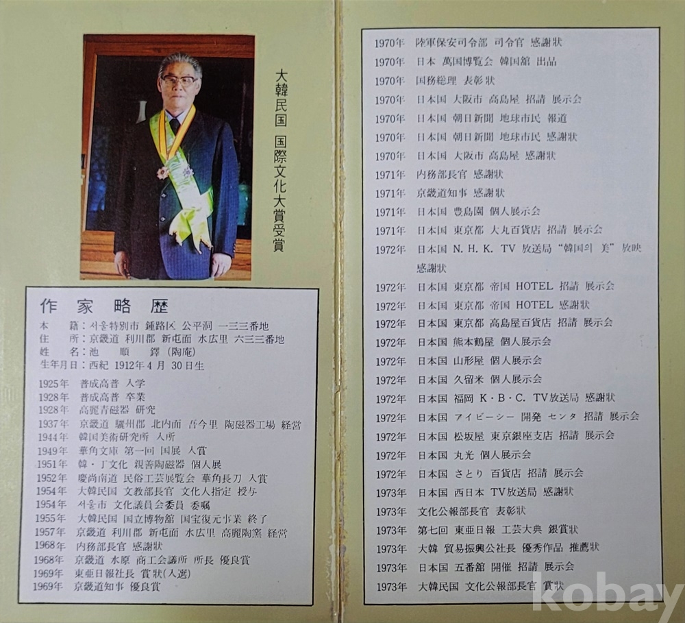 池順鐸 선생님의 이(경)력은 일본어판 이력서와 이력과 예술성과 가치는 각 사이트에 자세하게 소개되어 생략합니다.
