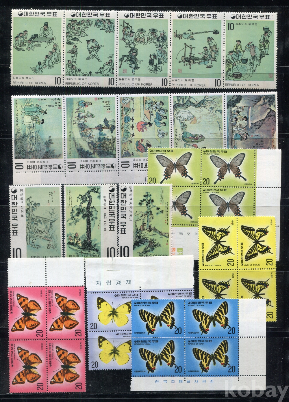 - [우표] 1971년 명화시리즈 4,5,6집 및 나비 블록모음 (All MNH : Mint Not Hinged) : 이미지 참조하세요