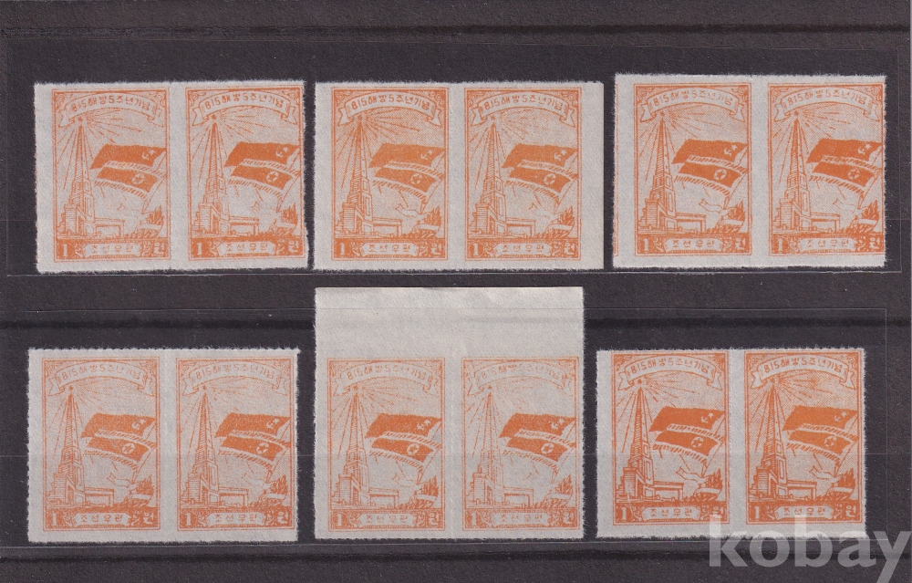 [윗동네 미사용 우표 모음展] - 8.15해방 5주년 기념 기념비 1원 가로 페어 6장 일괄
