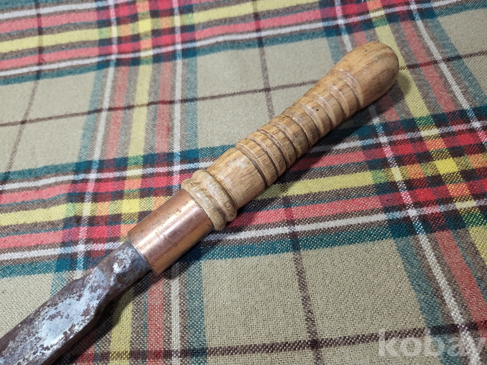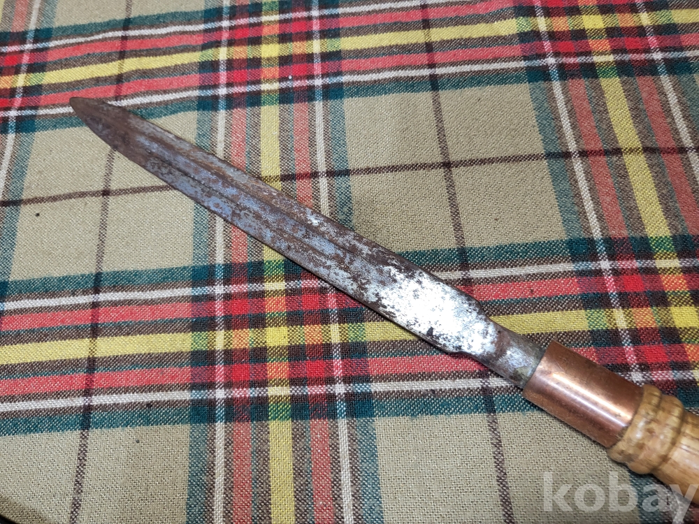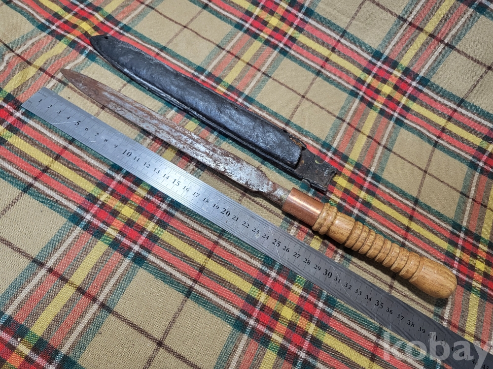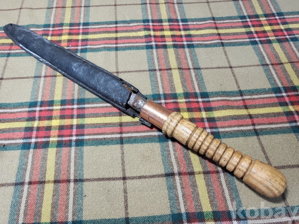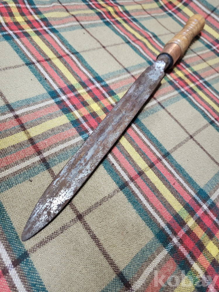 일본도 즉 가타나를 만드는 전통방식으로 제작된 일본의 창날. 창대에서 분리하여 손잡이를 만들어 휴대하도록 가죽집에 넣었습니다. 이를 창도 槍刀 라 하는데 오래된 일본 전통 무기입니다.