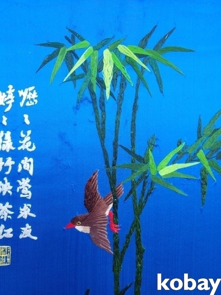 화려한 색상의 꽃과 새 표현 6폭 자수 병풍 입니다.