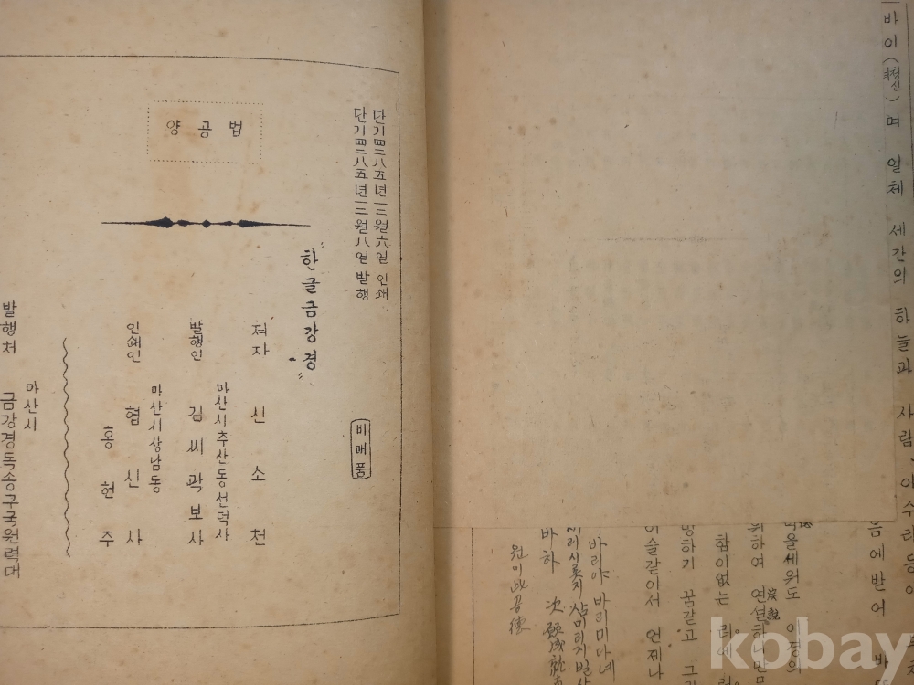 신소천 선생의 한글 금강경입니다. 늦은 나이인 56세에 1952년 범어사에서 용성스님의
