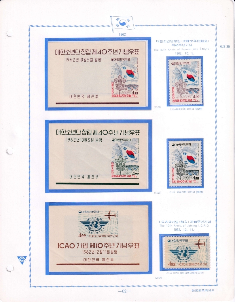 - 한국우표앨범 모음展 - 1962년 대한소년단 창립 제40주년 기념 우표 포함 6종