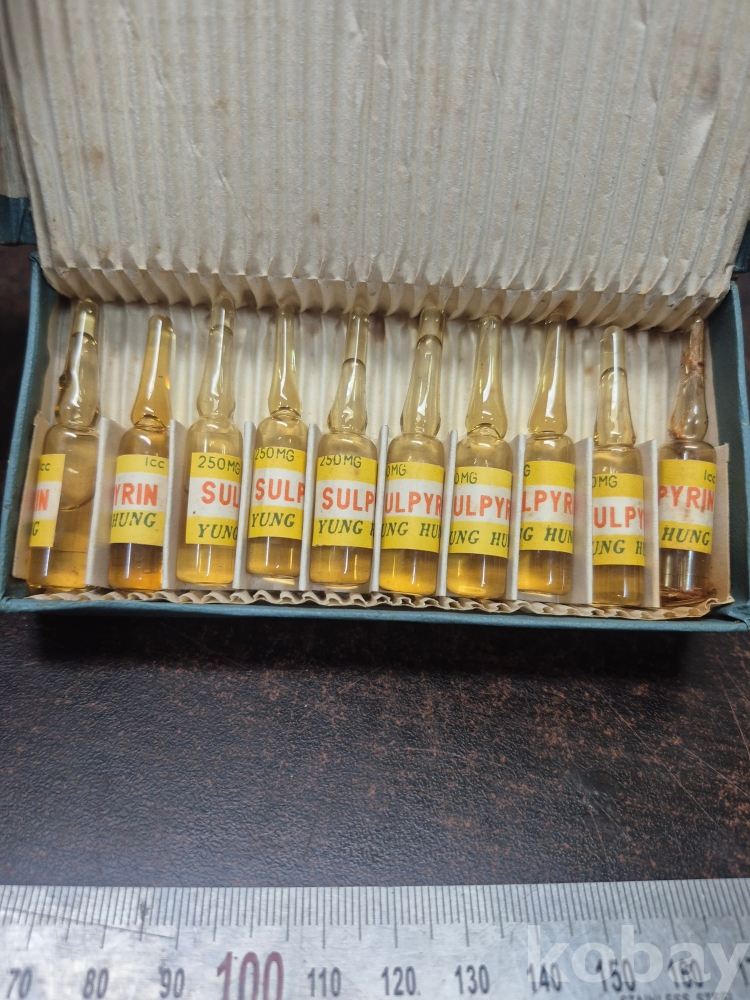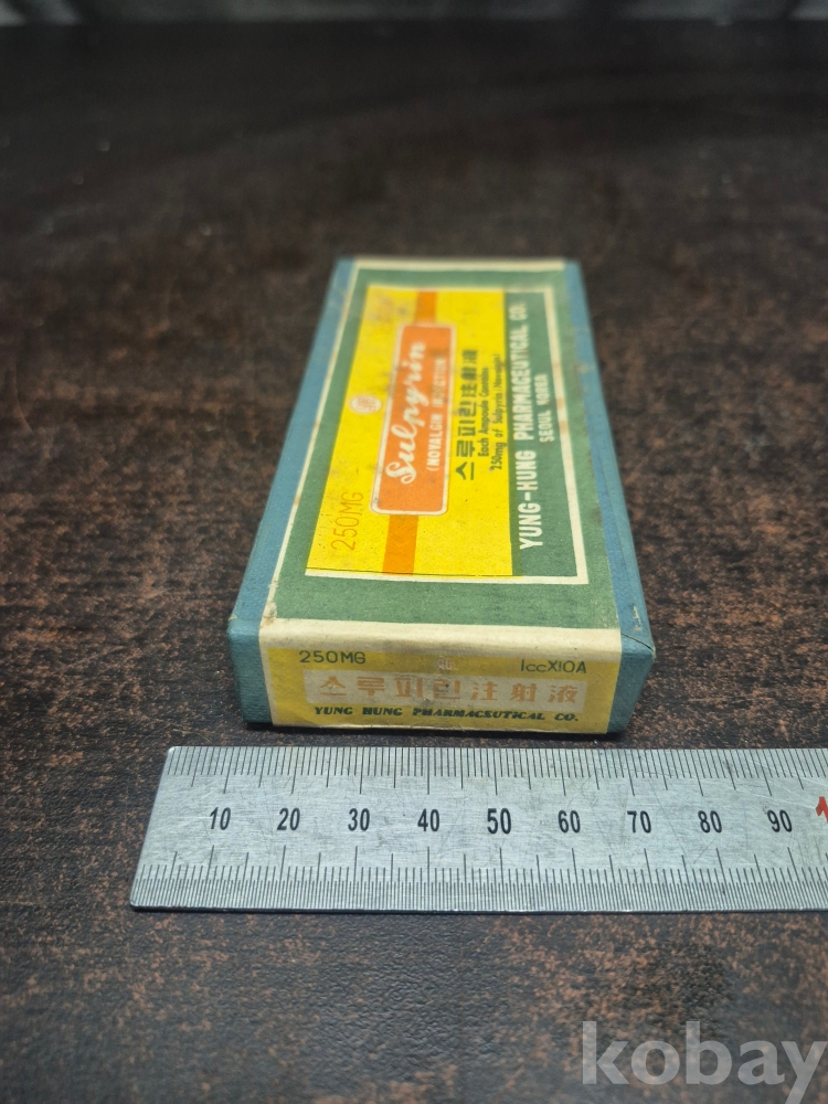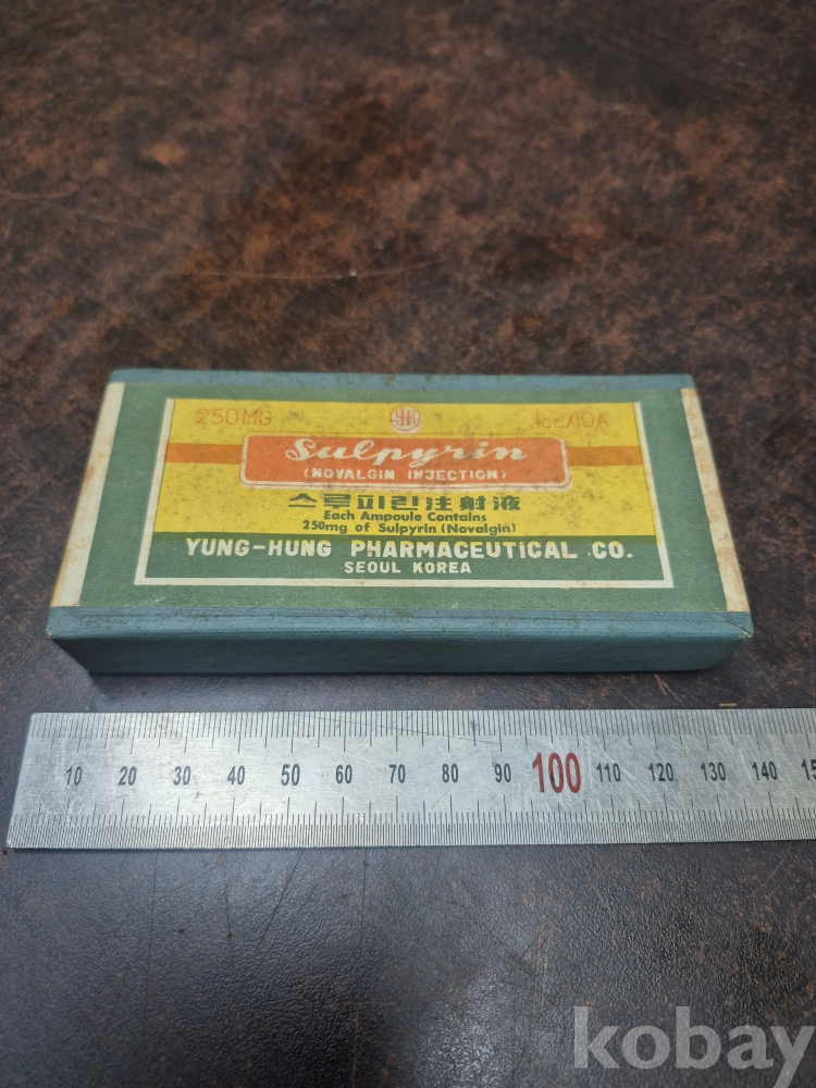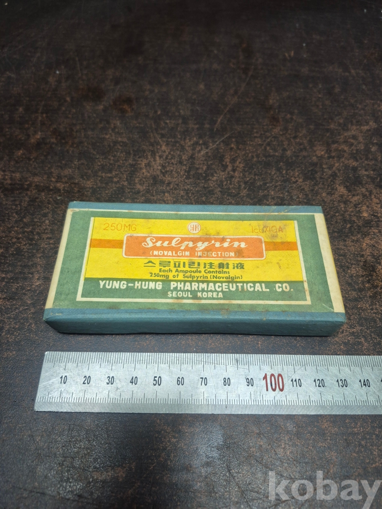1965년 영흥제약 술피린 주사액 앰플 250MG미개봉 의학 자료 메이드 인 코리아 12.5*6*2