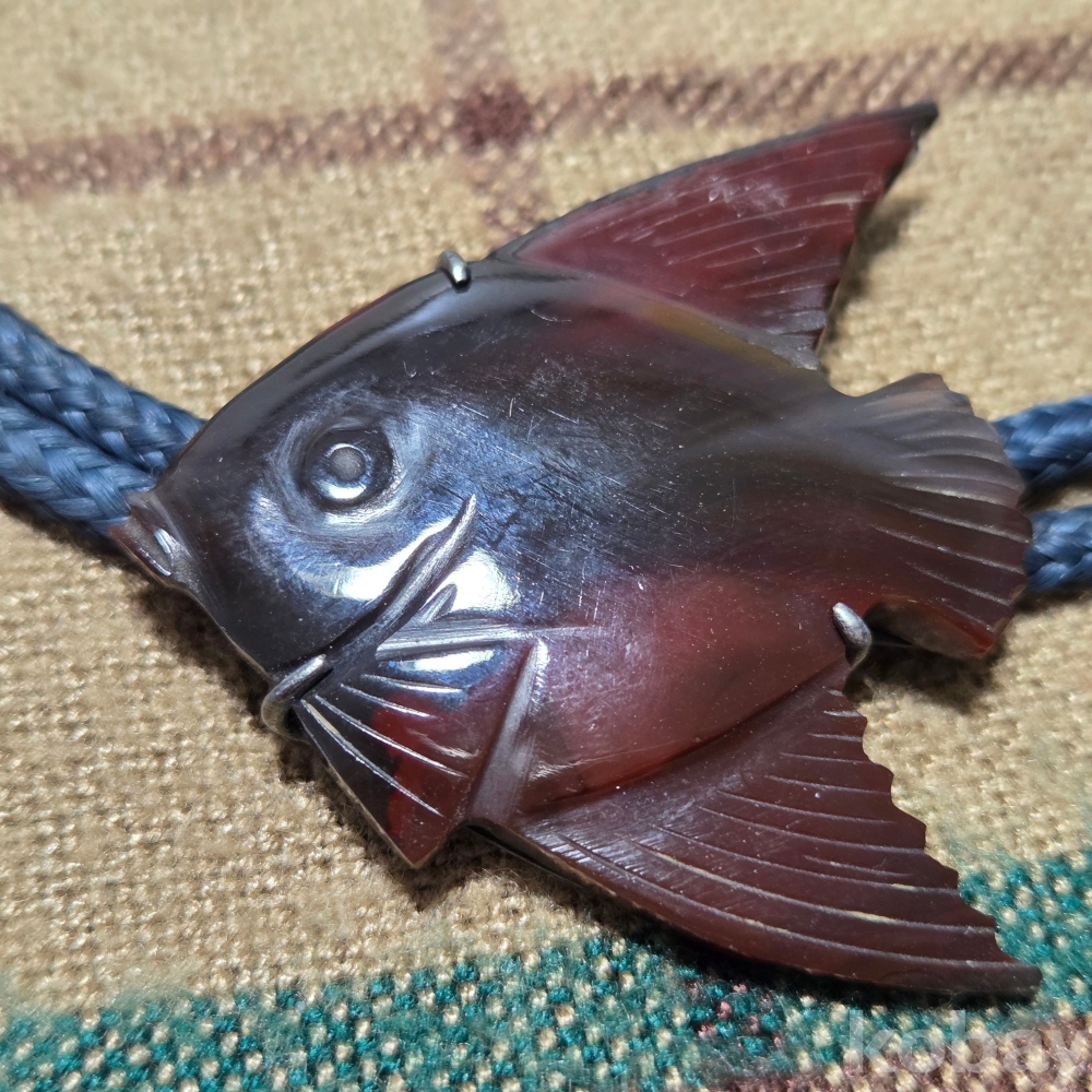 자만옥 물고기 은캡 볼로 타이 장식입니다