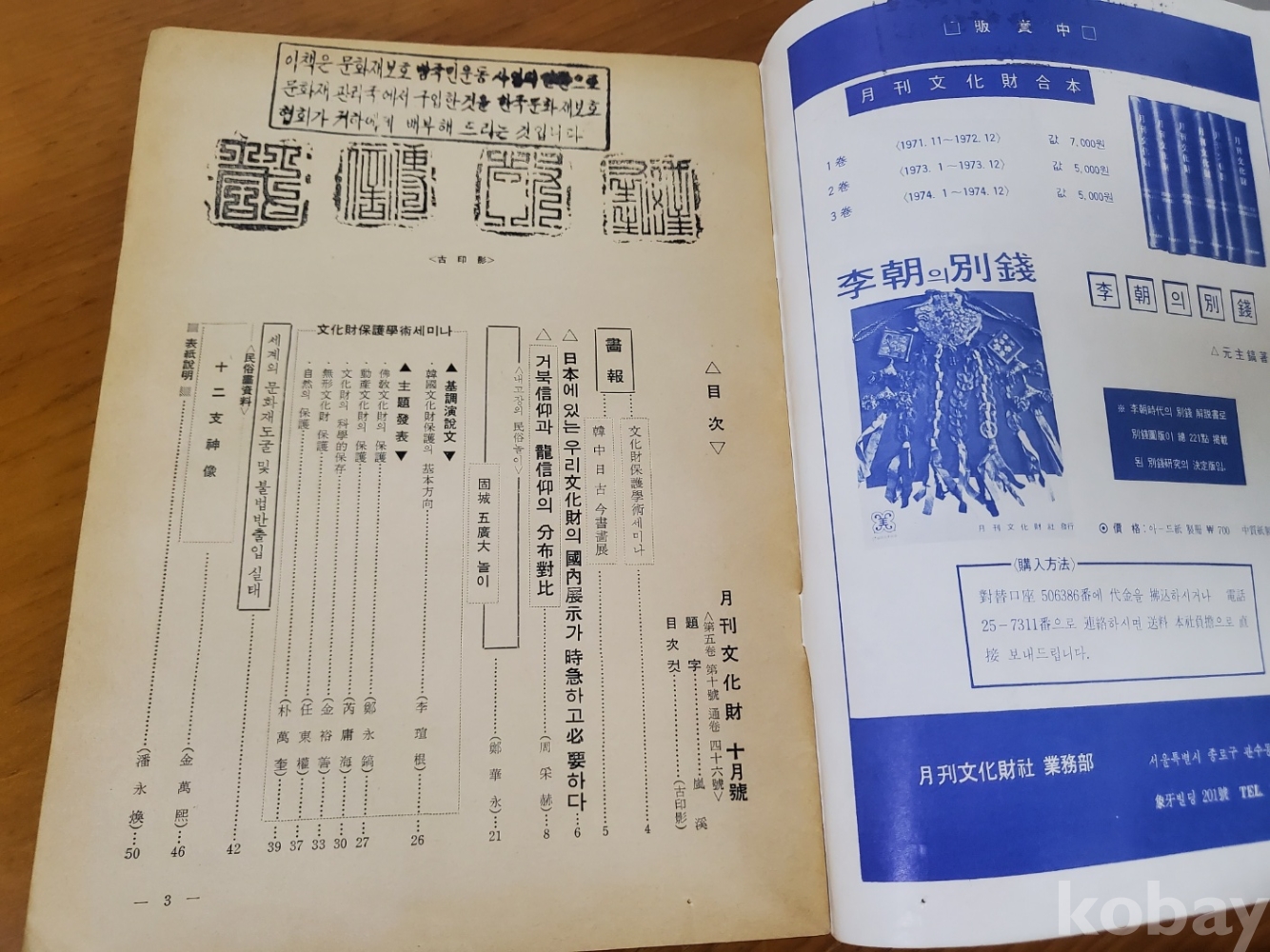 1. 월간문화재 통권 46호, 월간문화재사, 1975년, 50쪽, 상태 상, 사진 참조