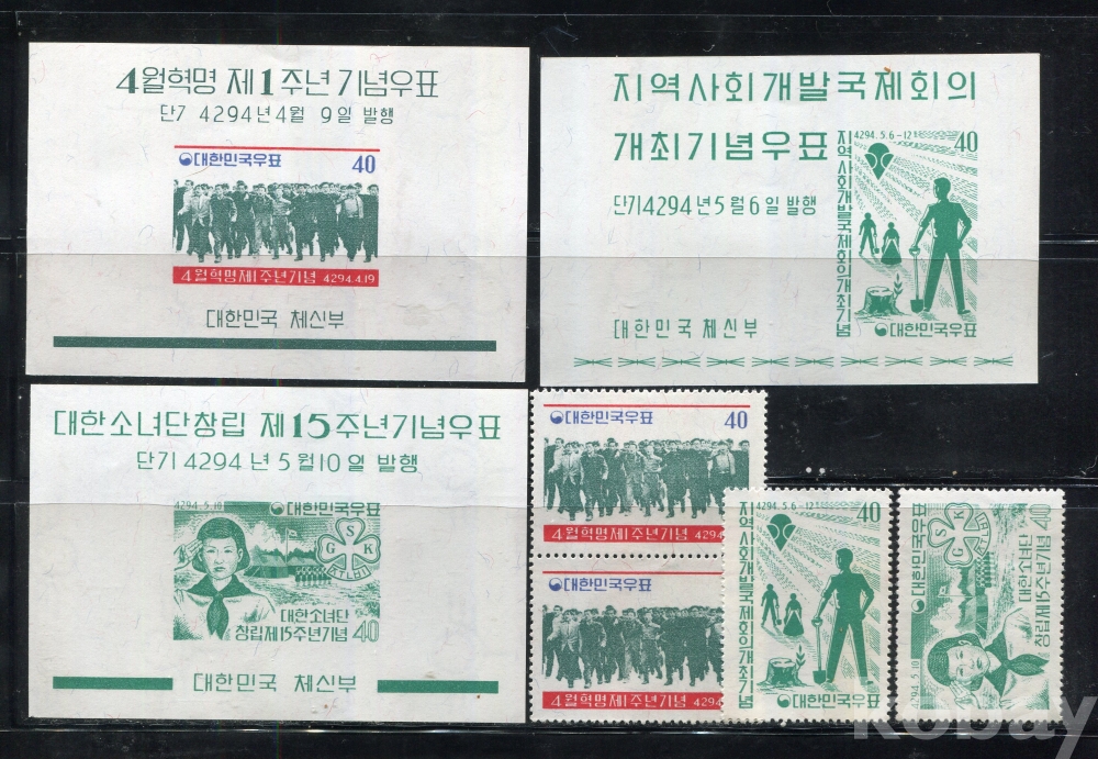 - [시트/우표] 1961년 미사용 시트 및 우표 3종 6 (All MNH : Mint Not Hinged) : 이미지 참조하세요