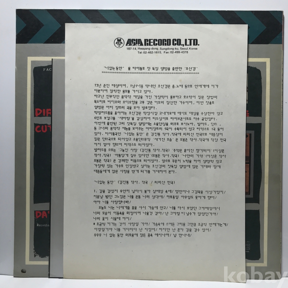 | 자켓상태 | EX : 약간의 마모, 모서리 찢김 존재 | 음반상태 | EX : 재생에 영향 없는 가벼운 기스 존재 | 발매정보 | 알수없음 | 가사지여부 | 무 |