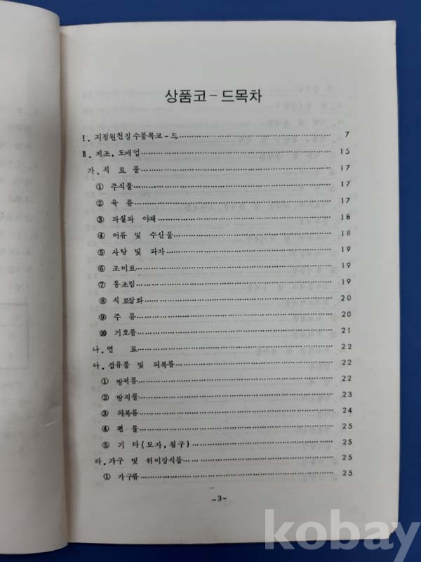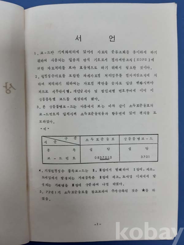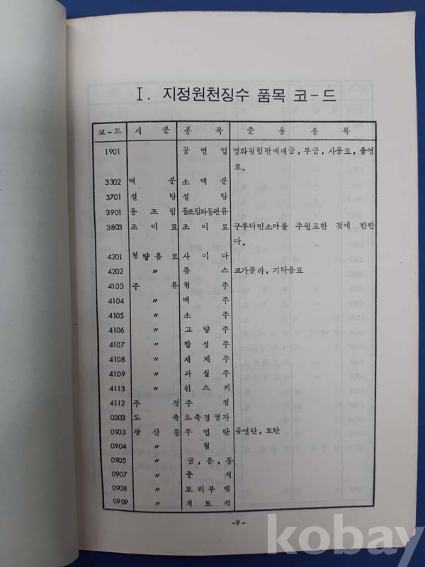 **** 1973년2월 상품품목코드 (국세청) 세금징수에 원할을 기하기 위하여 업종별로 구분된 상품코드 이다 총 54면