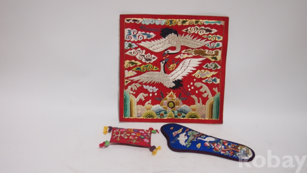 한국의 전통 자수 민예품/흉배, 바늘꽂이, 버선본 주머니입니다./깔끔한 상태 유지하는 최고의 작품입니다.
