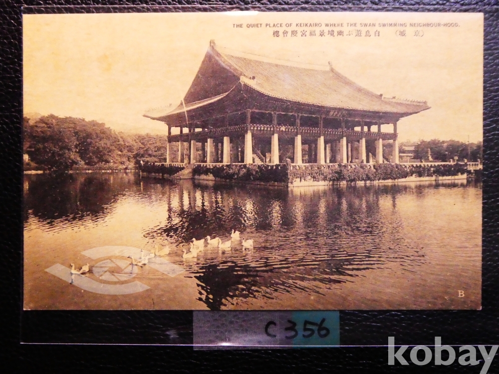 ▣근대한국엽서(진본): 백조가 놀고 있는 경성 경회루 전경/1매/역사자료,일제시대,일제강점기,사진엽서,그림엽서,회엽서. C356