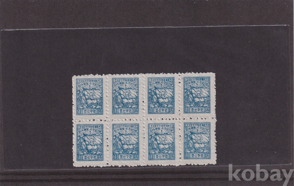 [윗동네 미사용 우표 모음展] - 8.15해방 6주년 기념 인민공화국 국기 1원(8장) 블럭