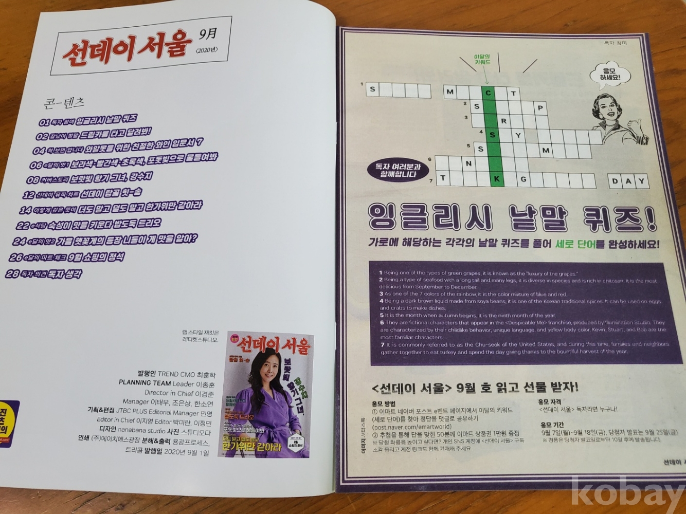 1. 선데이 서울 2020년 9월호, 이마트, 2020년, 28쪽, 월간, 비매품, 이마트 소식지, 표지 모델(가수 강수지), 상태 상, 사진 참조
