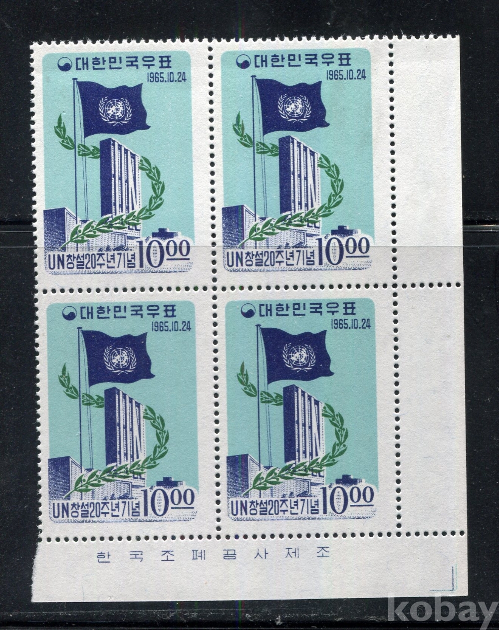 - [명판] 1965년 미사용 유엔 20년 (MNH : Mint Not Hinged) : 이미지 참조하세요