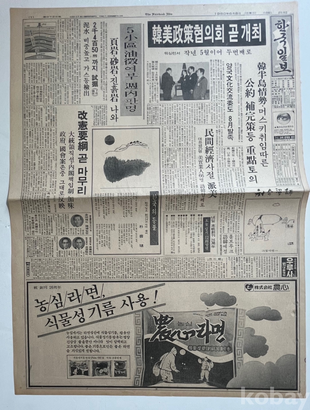 농심라면 광고가 실린 한국일보 낱장입니다.