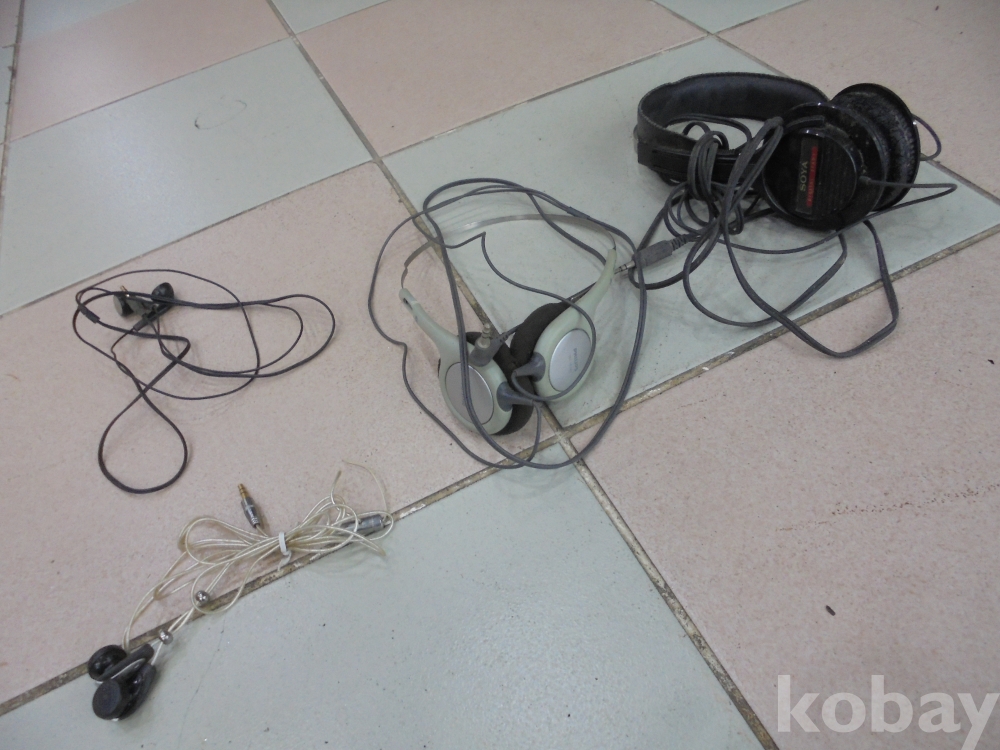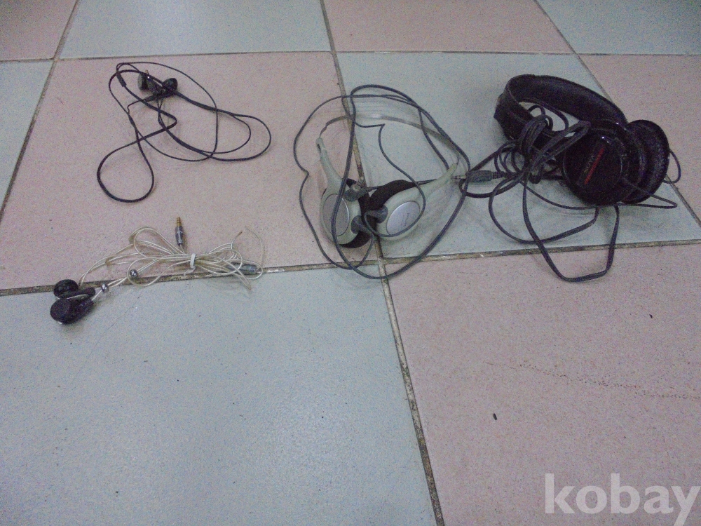쇼니로 전축등에 사용하는 큰혜드폰1점과 외에 컴푸터 라듸오 텔레비존에 서용하는등등 헤드폰 3점