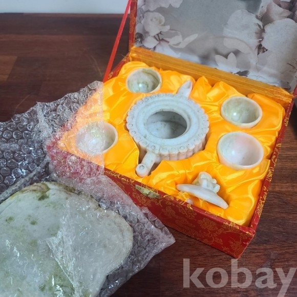 순수 옥으로 만든 다기 입니다. 옥에서 나오는 좋은 기운과 더불어 좋은 차 한잔으로 건강과 행복함을 누리세요. 미사용 세트로 실사용 및 선물용으로 손색없습니다