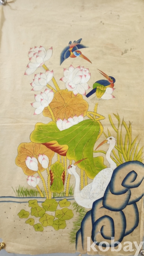 24호 內 냉장上 (화조 묶음)_번 ////// 화려한 채색이 아름다운 화조(畵鳥) 민화로 연꽃과 물총새 그림입니다,