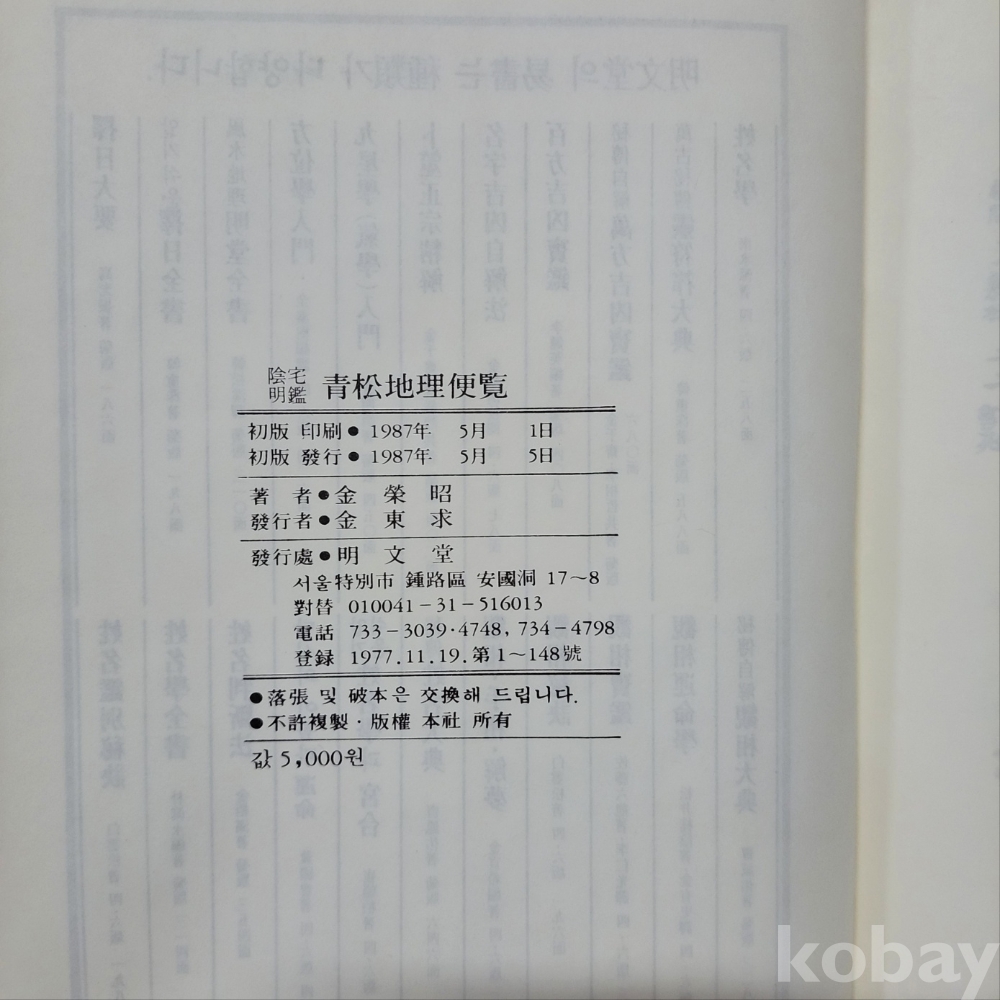 [희귀본] 음택명감 청송지리편람 / 명문당 1987년 초판 ; 중급/서고S1201