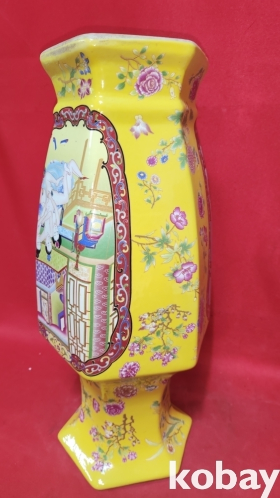 대청강희연제 분채 황지 인물 남녀 사랑 행위 문양 6각병입니다,