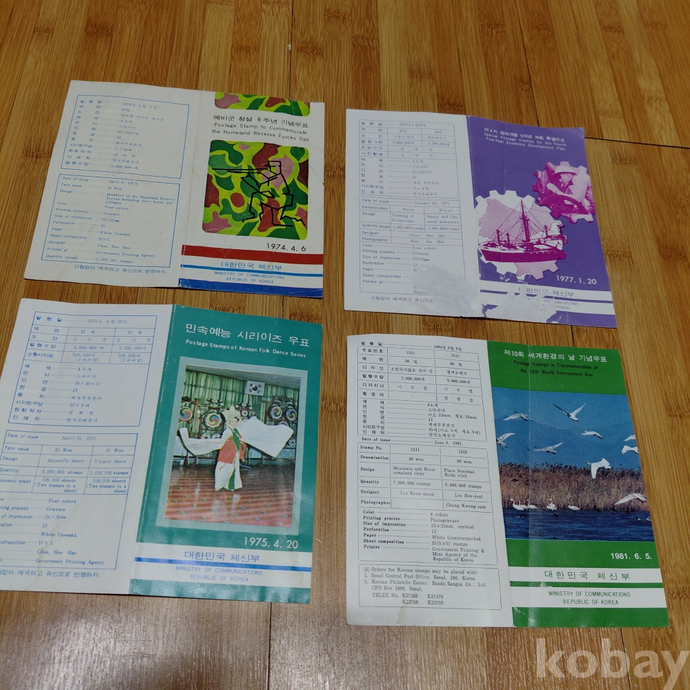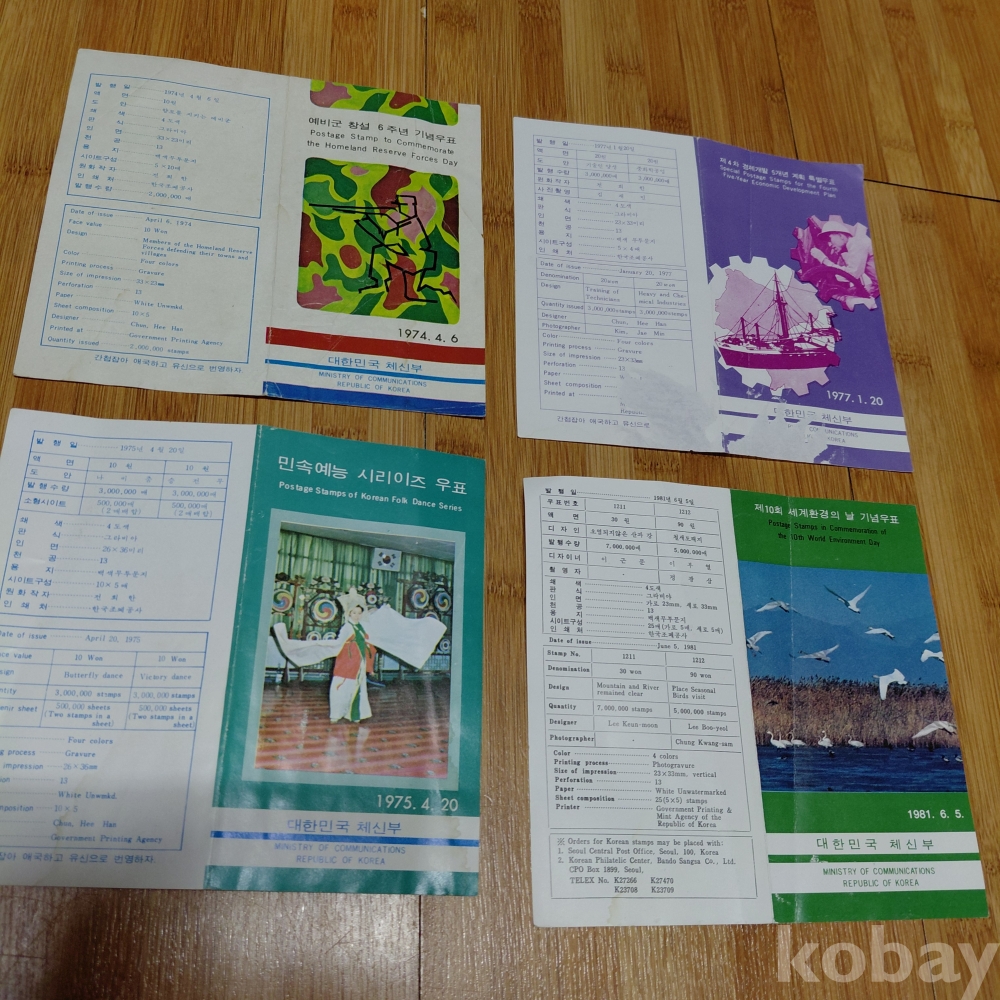70ㅡ80년대 우리나라 우표발행 안내 자료서 네점일괄 (70년대3. 80년대 1)올려드립니다