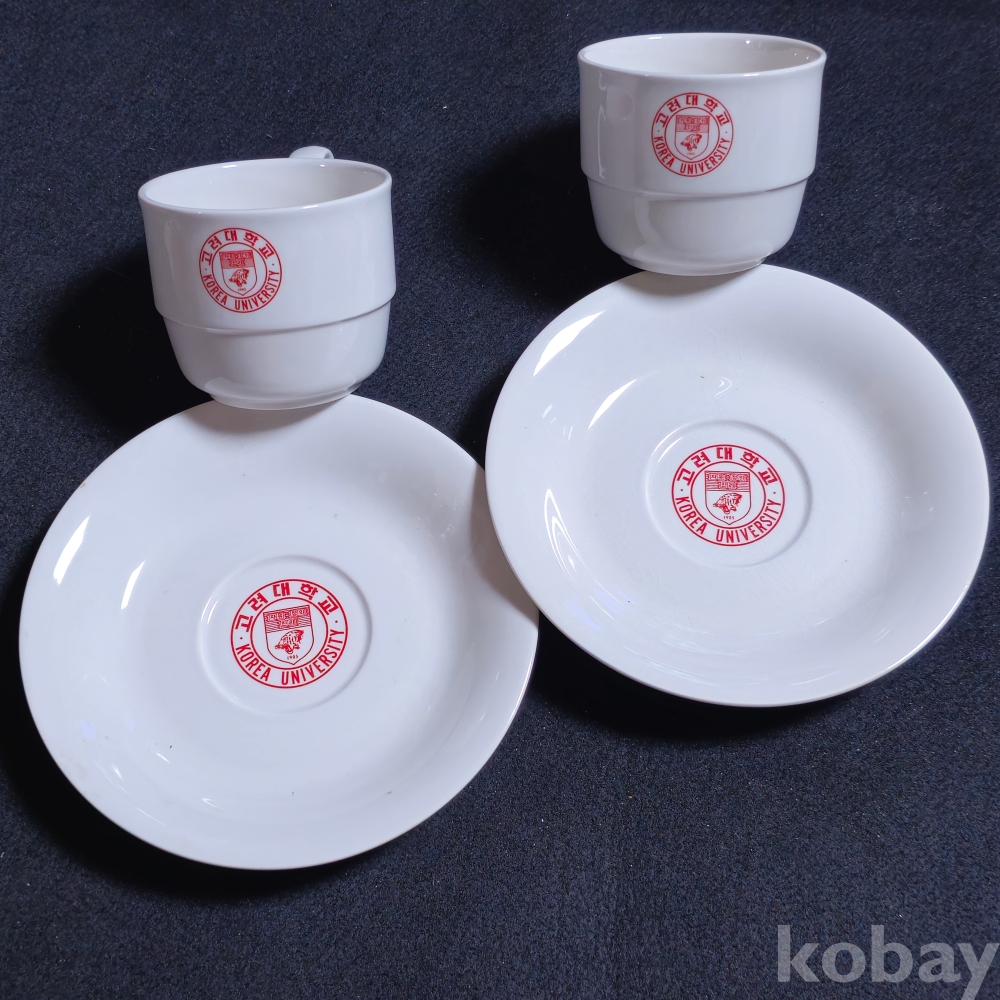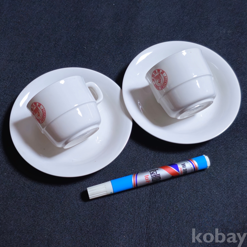 (((도자기커피잔))) 오래전 고려대학교 커플 도자기 커피잔/잔받침 (한국도자기)
