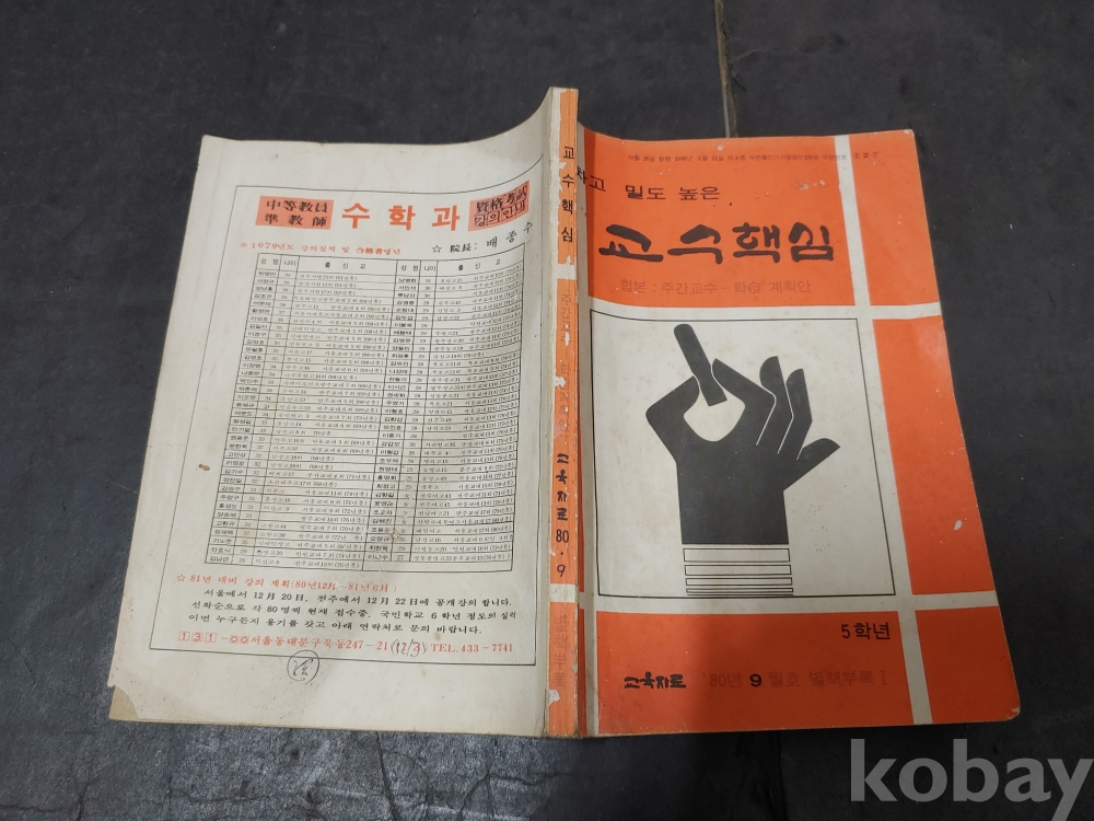 교수핵심 3책...5학년 교육자료 80년 9월호 3책임...1책은 표지에 세월의 흔적이 많음