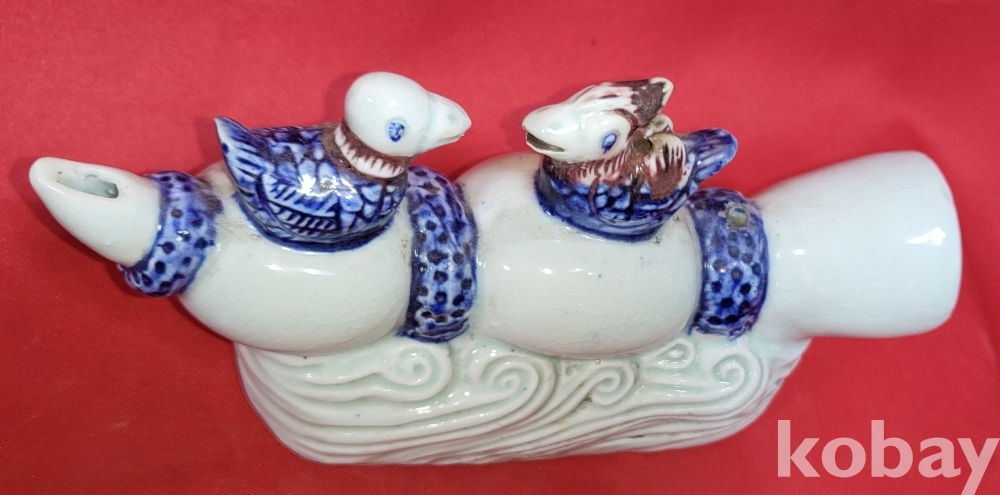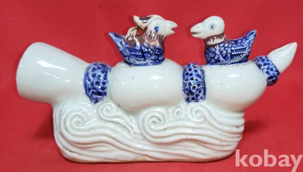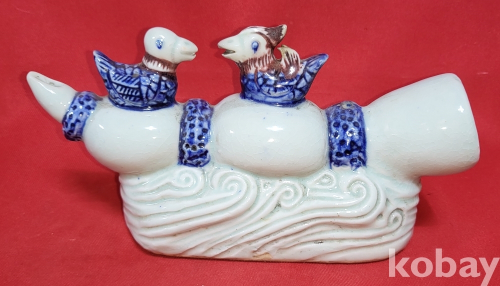 연대좋은 청화 유리홍 원앙문양 큰 연적입니다,